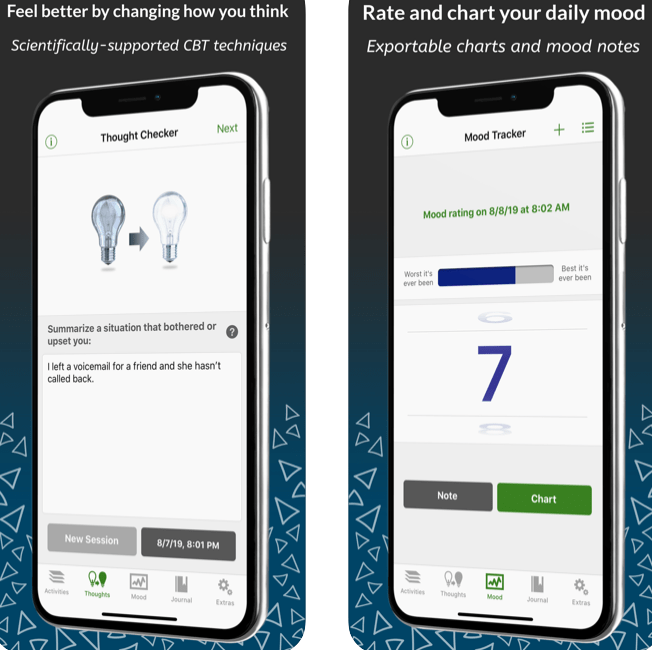 Description: This application is a great app that contains many activities for people who are struggling with mental illness. The activities are used to help improve one’s mood while someone is feeling upset, angry, stressed, and more. You can rate and chart how you feel, develop healthy attitudes, and even journal your thoughts. These activities have been shown to help users develop better long term mental health.